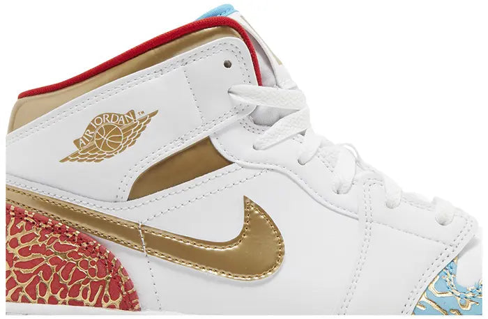 Premium leather upper blending UNC blue and Chicago red accents